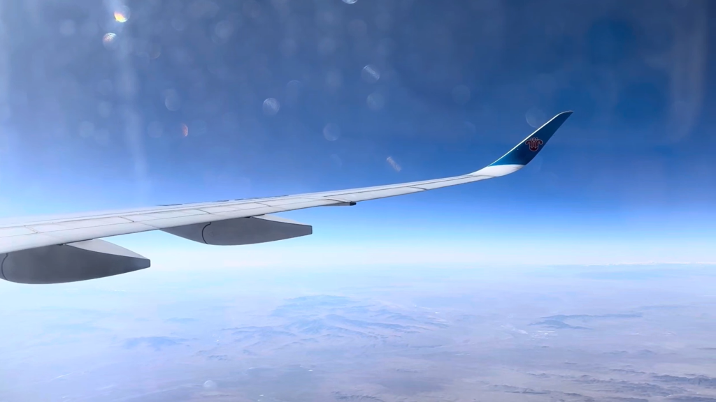 Het vliegtuig CZ308 vertrekt om 13.20u en we vliegen via Beijing.